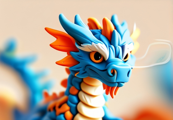 1. **骨骼重构**:将传统龙形身体比例压缩为5-8个基本形,头部圆润化、尾部螺旋化;